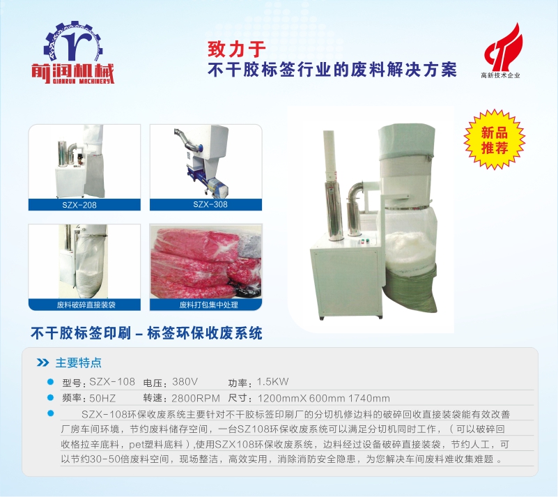 SZX-108 Eco-friendly Waste Recycling System (Designed for Sticker Label Printing Machine)