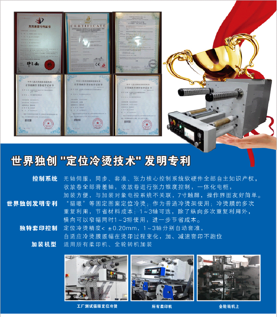 采用自主研發的超低摩擦浮輥控制方式;Re自動補償閉環張力控制系統;配備此機的優勢在于明顯提高生產力,提升質量控制,降低損耗,適用于各種透明及不透明材料;